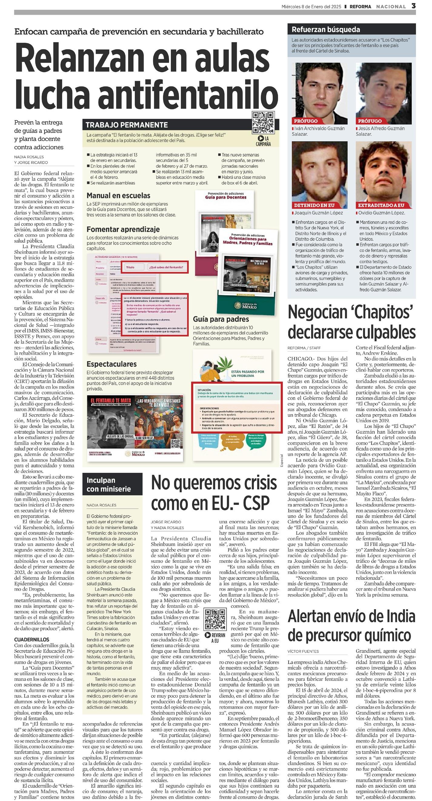 Ovidio Guzmán López, uno de los hijos de Joaquín “El Chapo” Guzmán Loera, se declaró ayer culpable de cuatro cargos de narcotráfico ante la justicia de Estados Unidos. En el acuerdo presentado en Chicago, de 36 páginas, se menciona que renuncia a apelar, accede a que se posponga su sentencia y afirma que la cooperación “incluirá proporcionar información completa y veraz en cualquier investigación y preparación previa al juicio, así como prestar testimonio completo y veraz en cualquier procedimiento penal, civil o administrativo”. Añade que el acusado se compromete a cooperar plena y sinceramente en cualquier asunto que le sea solicitado por la Fiscalía Federal.