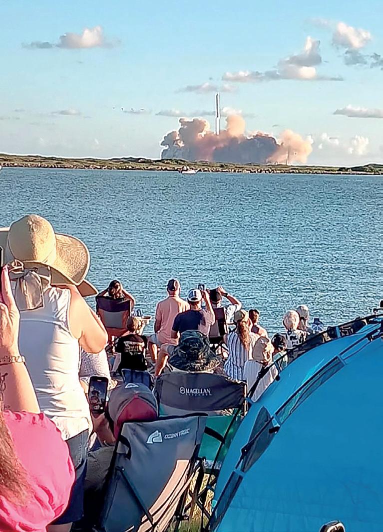 A las 17:24 horas (18:24 tiempo de la frontera), el cohete despegó de Starbase ante la mirada de cientos de personas en la Isla del Padre, Texas. Del lado mexicano, en playa Bagdad, en Matamoros, Tamaulipas, unas mil 500 personas acudieron a presenciar el lanzamiento.
