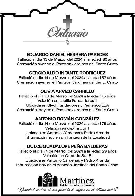 FUNERARIO, SEXO MASCULINO MAYOR DE 28 AÑOS, CON DISPONIBILIDAD DE HORARIO Y ACTITUD DE SERVICIO. INTERESADOS PRESENTARSE EN MIGUEL HIDALGO #1228, CASI ESQUINA CON FRANCISCO COSS O COMUNICARSE AL 844414-44-85.
