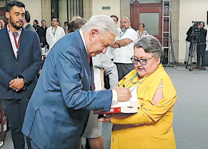 z Docentes pidieron al Presidente, durante el festejo por el Día del Maestro, que les dedicara su último libro.