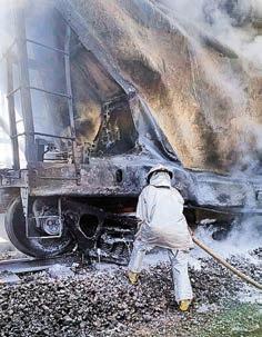 A más de 20 horas del fatídico accidente en las vías del tren, el olor a plástico quemado persistía, el fuego no cesaba y el humo que emanaba la combustión de químicos ardía en los ojos.