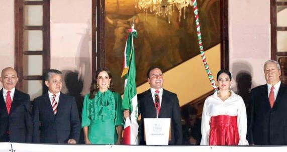 Ya desde el balcón, Manolo Jiménez emuló al cura Miguel Hidalgo para dar el tradicional Grito de Independencia ante miles de ciudadanos que asistieron a la Plaza de Armas, festejando los 214 años desde el comienzo de la lucha.