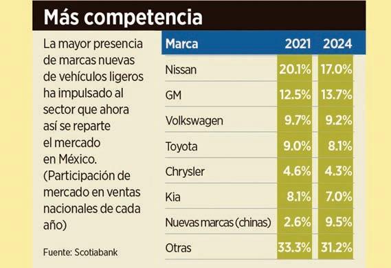 nales de 2020 y en dos años se posicionó entre las 10 marcas más vendidas en México, ha ralentizado su crecimiento en el último año. En 2024, y según datos de Inegi, comercializó 60 mil 168 autos, lo que representó un ligero crecimiento de apenas 0.1% respecto a las 60 mil 128 unidades del año anterior. Aunque la cifra muestra estabilidad, también sugiere que el crecimiento explosivo que tuvo en sus primeros años de operación se desacelera. Chirey, que se posicionó como la segunda marca china más vendida en México, comercializó 26 mil 842 unidades en 2024, una caída de 30.3% respecto al año anterior, de acuerdo con datos del Inegi. El escepticismo de los consumidores no es nuevo en la industria automotriz. Marcas japonesas y coreanas también enfrentaron dudas cuando incursionaron en América hace décadas. Sin embargo, supieron construir su reputación a través de un servicio posventa eficiente y una mejora continua en la calidad de sus productos. Gómez sugiere que para revertir la percepción negativa, las armadoras chinas deberán invertir en infraestructura y logística. El modelo de negocio que han seguido otros fabricantes en México implica integración con proveedores locales y estrategias de distribución que permitan que las refacciones lleguen en cuestión de días o incluso horas.