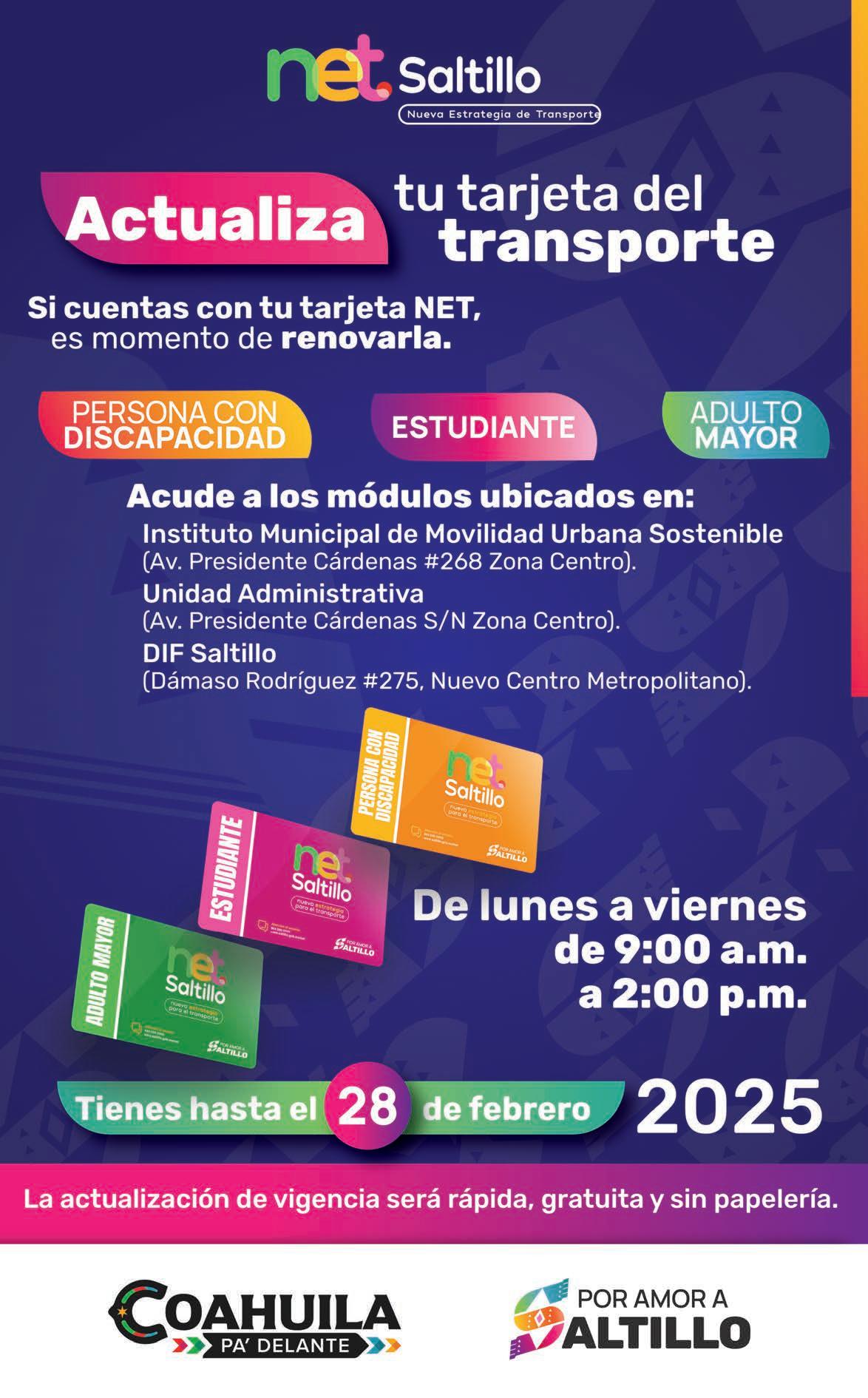 Así que, atentos a este renglón. Además, esta misma semana, el Alcalde participará del Consejo Directivo de Aguas de Saltillo, donde uno de los temas a tratar será los accidentados cortes de servicio que se han generado en las últimas semanas.