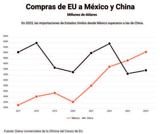 millones de dólares. La inversión directa del gigante asiático yarebasólos2mil700millones en el país, según datos de Banxico y la Secretaría de Economía. No se diga de Estados Unidos,elintercambiocomercialalcanzó los 763 mil 460 millones de dólares, de los cuales 67% corresponde a exportaciones. Los beneficios potenciales son claros. El fin parcial de las restricciones sobre tierras raras y el acceso renovado de estudiantes chinos a universidades estadunidenses marcan un regreso a la diplomacia funcional. En ese escenario, México aparece como plataforma logística confiable, gracias al T-MEC y a su creciente conexión con Asia. También hay retos Sin embargo, la Cámara también advierte un desafío. Si China retoma con fuerza sus exportaciones hacia Estados Unidos, México enfrentará una mayor competencia. El reto será sostener el atractivo propio mediante innovación, encadenamientos productivos y colaboración tecnológica.Laoportunidadno radica en sustituir a China, sino en complementarla. En 2023, México desplazó a China como principal socio comercialdeEstadosUnidos,tiene