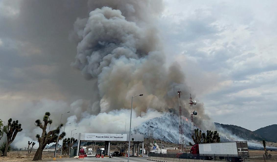 altura del kilómetro 210, de la carretera 57, donde se originó el incendio, cerca de la caseta de Huachichil. La columna de fuego y humo alcanzó gran altura y fue visible a varios