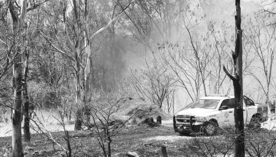 gadistas con apoyo aéreo de un helicóptero del Gobierno del Estado, que ha realizado 36 descargas de agua hasta la noche de ayer. Las autoridades señalaron que el cambio en la dirección del viento ha concentrado los esfuerzos en el flanco oriente, para evitar que las llamas se propaguen a zonas cercanas.