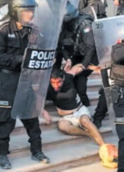 Avanzan Posteriormente, el contingente se trasladó hasta el Palacio de Gobierno, donde algunos de los asistentes realizaron pintas con aerosol en la fachada del recinto. Ante esta situación, un grupo de Fuerza Civil arribó para reforzar la seguri-