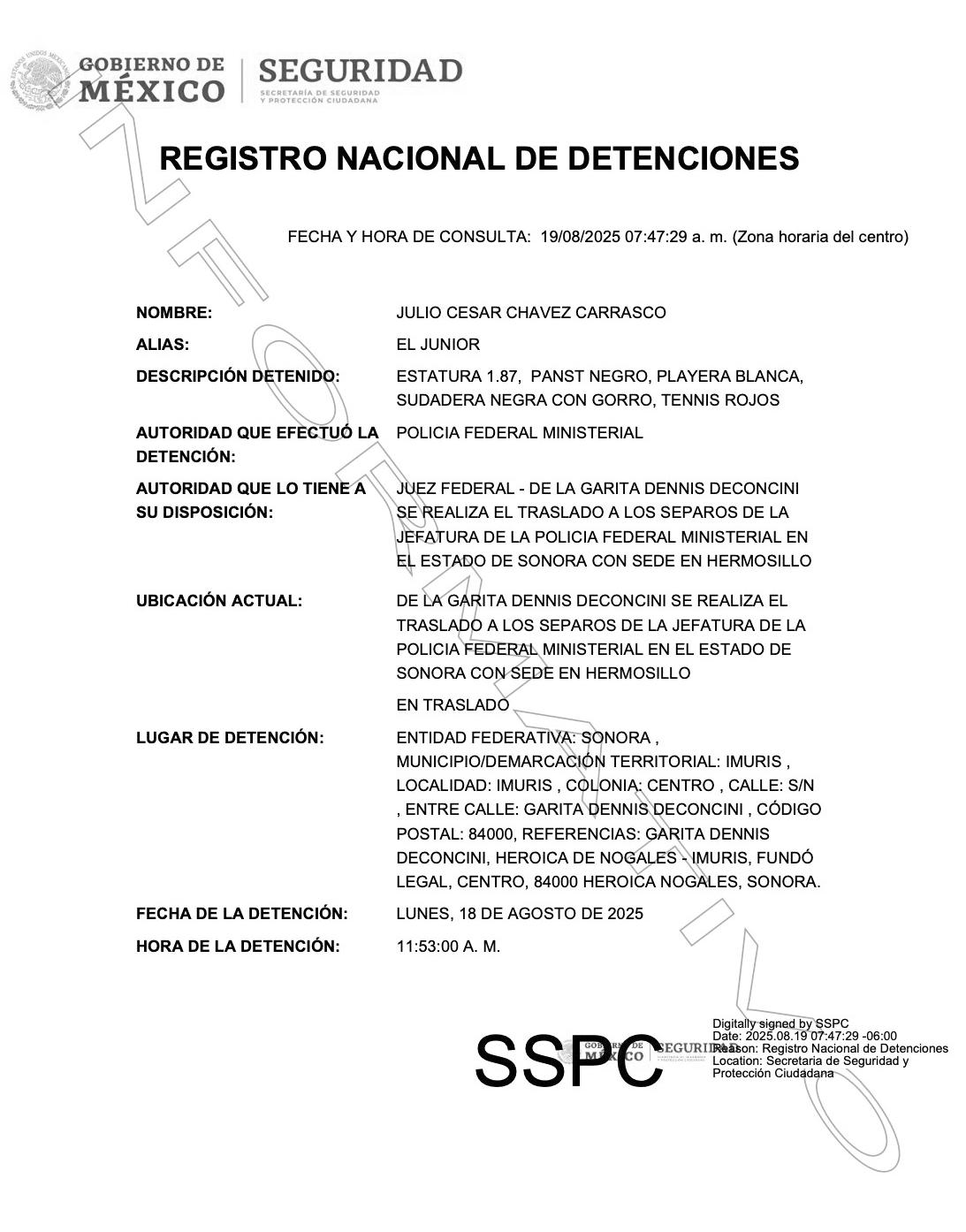 Chávez, quien era requerido en México por su presunta responsabilidad en el delito de delincuencia organizada, en una investigación sobre el cártel de Sinaloa.