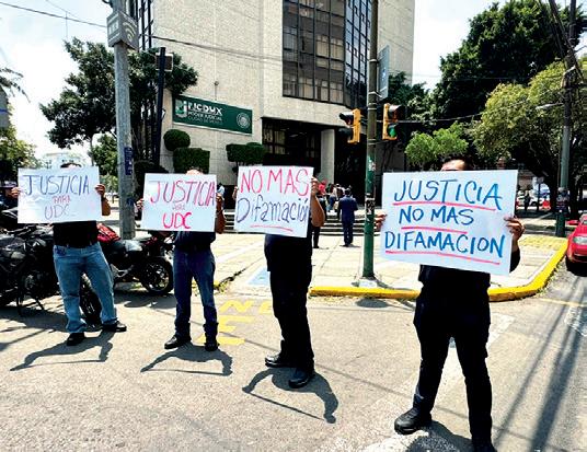 ción iniciada por una youtuber. Con pancartas y consignas, exigieron que se respete la reputación del directivo y del plantel académico. Páginas 2A / 1C