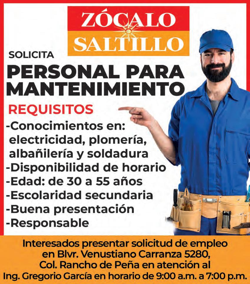 PRESENTAR SOLICITUD EN CALLE DR. LORENZO MARTINEZ MEDINA, FRACC. LOS CARLOS #235- 8, SALTILLO COAHUILA, AUN COSTADO DE SORIANA PORTALES