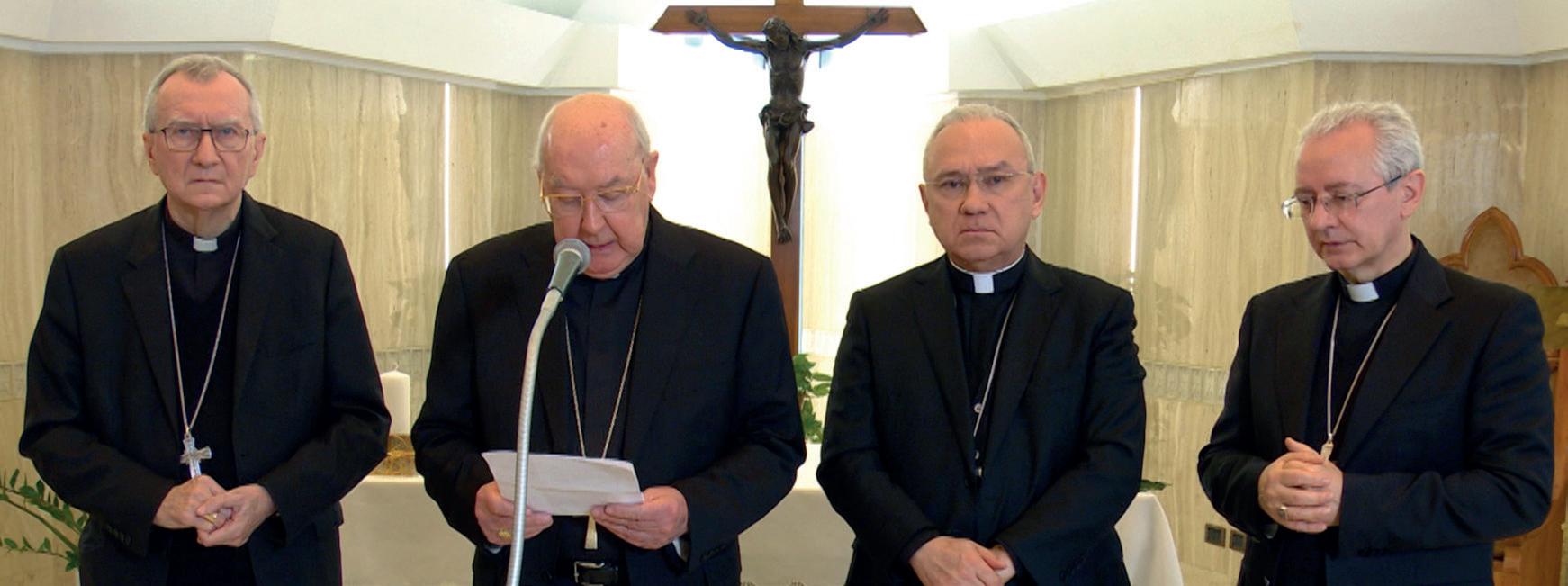 autoridad para las decisiones administrativas y de gestión del Vaticano recae en la figura del camarlengo, que desde 2019 es el cardenal estadounidense Kevin Joseph Farrell. Es quien certifica la muerte del pontífice, anula el anillo pontificio y cierra las estancias papales. Luego comunica el fallecimiento al cardenal vicario de Roma, que anuncia la noticia. El camarlengo gobierna con la ayuda de tres cardenales, elegidos a suerte, renovados cada tres días.