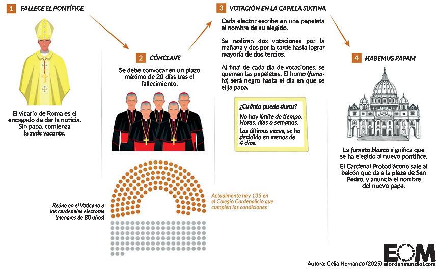 Tras la muerte de Francisco, hay tres principales novedades: el protocolo del funeral se ha simplificado; no será enterrado en el Vaticano, sino en la basílica de Santa María la Mayor de Roma; y el cónclave quizá empiece antes de lo que es habitual y no sea necesario esperar 15 días. Una nueva norma de Benedicto XVI en 2013 introdujo la posibilidad de comenzar cuando todos los cardenales estén en Roma, sin más dilación. Esto se decidirá en los próximos días. Naturalmente, la novedad más importante será el nombre del nuevo pontífice, uno de los 137 cardenales que entrarán en el cónclave más internacional de la historia.
