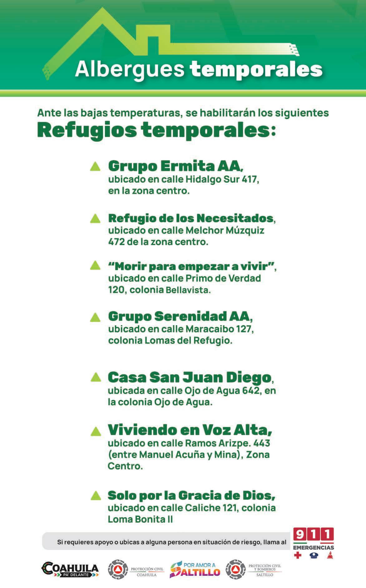 Esto, como ocurrió ayer, provocaría un ausentismo total en las diferentes instituciones educativas, en especial en el nivel básico. Ya que el lunes, con una temperatura que a la hora promedio de ingreso del turno matutino rondó en Saltillo entre 1 y 0 grados, se tuvo 82% de alumnado faltante a clases.