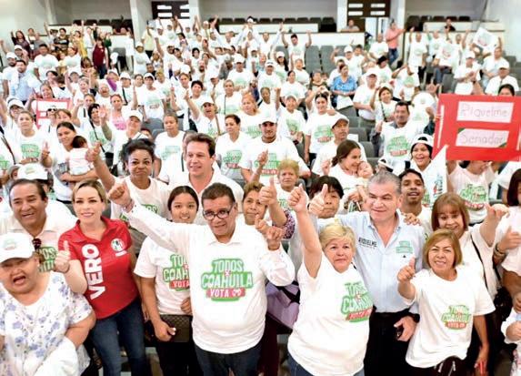 Al asegurar que las elecciones del próximo domingo 2 de junio van más allá de un partido político, pues representan el futuro de las y los coahui- lenses, Miguel Ángel Riquelme Solís y María Bárbara Cepeda llamaron a la ciudadanía en general a no confiarse y hacer lo necesario para que gane Coahuila y México.