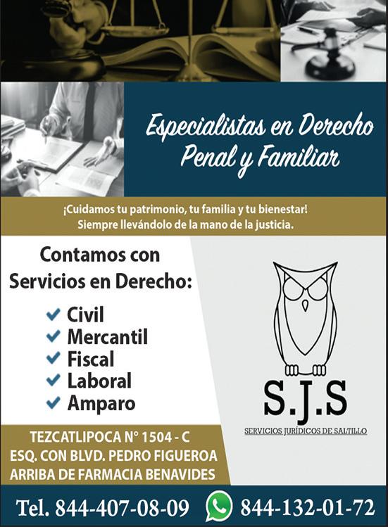 NO VENDAS A CIEGAS: SE HACEN AVALUOS ECONÓMICOS DESDE $1,500.00; INFORMES AL TELEFONO (S) CELULAR 844-280-99-78 OFICINA 844-416-15-15 PROFESIONISTAS ONCOLOGISTICA FARMACIA ONCOLOGISTICA SOLICITA MERCADOLOGO, RECIEN EGRESADO O PROXIMO A TITULARSE, HORARIO DE LUNES A SABADO 10;00 AM A 18;00 DESCANSO DOMINGOS. PRESTACIONES A LAS DE LA LEY. PRESENTARSE CON SOLICITUD DE EMPLEO Y CURRICULUM. PRESENTARSE EN BLVD. NAZARIO ORTIZ GARZA 2885 INT 4 A UN COSTADO DE GALERIAS. ATENCION LIC PABLO DE LEON. TELEFONO. 844-528-01-07 TECNICOS SOLICITO TECNICO ENTRE 25 Y 35 AÑOS, PARA OPERAR Y DAR MANTENIMIENTO A MAQUINAS DE FABRICACION DE EMPAQUES DE CARTON. EMPRESA EN RAMOS ARIZPE INFORMES SOLO POR WHATSAPP 844-892-54-82 VARIOS CHOFERES SE SOLICITA PERSONAL PARA MOSTRADOR, DECORACION Y SERVICIO AL CLIENTE, MAYORES DE EDAD, BUEN SUELDO, PRESTACIONES DE LEY, PRESENTAR SOLICITUD EN ABASOLO 680 ZONA CENTRO TEL. 844-485-20-14 INTENDENTES INSTITUCION EDUCATIVA UBICADA AL NORTE DE SALTILLO SOLICITA AUXILIAR DE LIMPIEZA, PRESTACIONES SUPERIORES A LAS DE LEY, OFRECEMOS BUEN SUELDO, EXCELENTE AMBIENTE DE TRABAJO; REQUISITOS INDISPENSABLES, SEXO FEMENINO, EDAD DE 25 A 55 AÑOS, DISPONIBILIDAD DE HORARIO, QUE VIVA AL NORTE DE SALTILLO O BIEN EN RAMOS ARIZPE, SOLICITUD PRINTAFORM, INDISPENSABLE PRESENTARSE A ENTREVISTA. TELEFONOS: 844- 439-85-84 Y 844-439-87-75 EXT. 14 Y SOLO WHATSAPP 844159-95-77. VARIOS AYUDANTE DE COCINA, SEXO FEMENINO, PARA RESTAURANTE DE MARISCOS Y ESTUDIANTES, PARA FINES DE SEMANA. 844-158-85-05. AYUDANTE GENERAL, SEPA MANEJAR, PARA EMPRESA RAMO DEL ACERO, OFRECEMOS $1,750.00 POR SEMANA, MAS PRESTACIONES DE LEY, ESTAMOS CERCA DE LOS TERRENOS DE LA FERIA TEL. 844-231-01- 39 BAPSA SOLICITA AYUDANTE GENERALYTECNICO ELECTROMECANICO, TURNO FIJO TRABAJO EN RAMOS ARIZPE INFO. 844-181-91-71 FONTANA DI ROMA RESTAURANTE ITALIANO SOLICITA LIC EN GASTRONOMIA, RECIEN EGRESADO O PROXIMO A TITULARSE CON O SIN EXPERIENCIA, COCINEROS, MESEROS Y ADMINISTRADOR, HORARIO DE MARTES A DOMINGO DE 15;00 A 23 HORAS. DESCANSO LUNES, PRESTACIONES DE LEY. PRESENTARSE CON SOLICTUD DE EMPLEO Y CURRICULUM. EN PROLONGACION MANUEL ACUÑA 401 COL LOMAS DEL VALLE II EN RAMOS ARIZPE, COAH. TELEFONO. 844-348-00-95 6F Clasificados ZóCalo Saltillo Lunes 22 de abril de 2024 SUR CHEVROLET NISSAN FORD