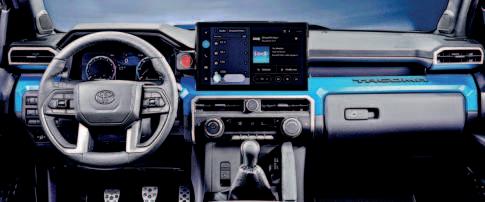 metros. Su apariencia robusta, musculosa y agresiva, está planeada también para mejorar la aerodinámica, tal y como sucede con el faldón frontal y la parte trasera de la cabina. Toyota Tacoma utiliza la plataforma global TNGA-F, usa acero de alta resistencia con soldaduras por láser e incorpora aluminio en la parte superior de la