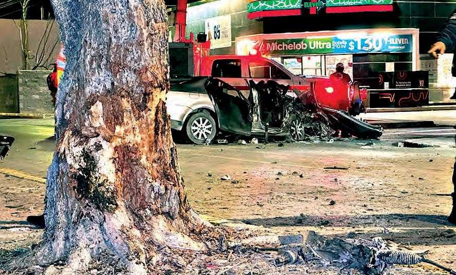 Erick quedó prensado en su vehículo tras impactarse de lleno contra el árbol del camellón en el bulevar Pedro Figueroa, en plena zona de antros donde se divertían esa noche.