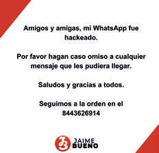 Para los que están al pendiente de las actividades del diputado federal Jaime Bueno Zertuche, este jueves llegaron extraños mensajes a sus contactos de WhatsApp. La conversación inició con un saludo, pero la cordialidad no fue propiamente del también dirigente del PRI Saltillo, sino del delincuente cibernético que se apoderó de su cuenta de mensajería instantánea.
