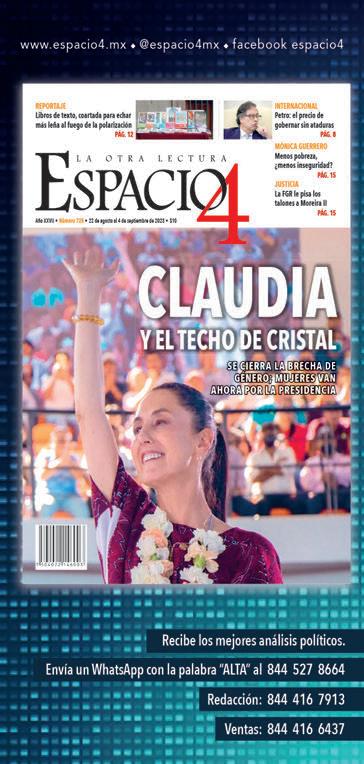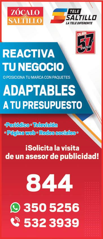 Viernes 25 de agosto de 2023 | Año XVI | Número 5549 | 36 páginas | 4 secciones | www.zocalo.com.mx $10.00 NUEVOS LIBROS TIENEN FALLAS: AMLO n 3A @PeriodicoZocalo Periodico Zócalo zocalosaltillo @ZocaloWebMedia LA UADEC HA SIDO UNO DE LOS GRANDES ALIADOS DE MI GOBIERNO: MARS CONTROLARÁN INGRESOS DE CONCESIONARIOS Tomará Saltillo