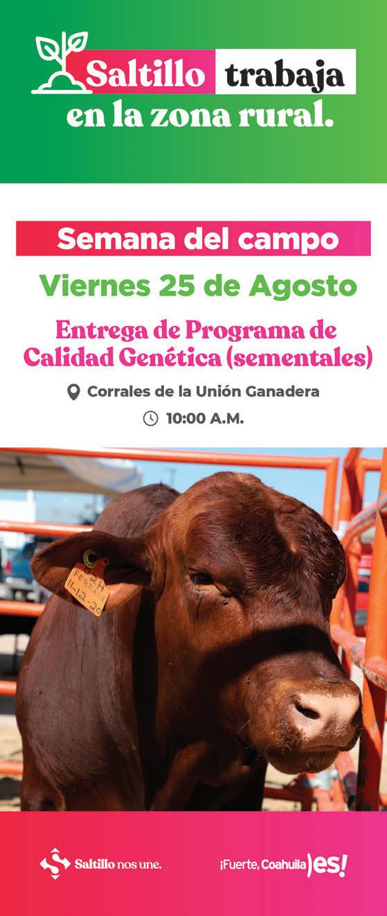 Por cierto, los que este viernes de seguro vestirán botas y som- brero serán el gobernador Miguel Ángel Riquelme y el alcalde Chema Fraustro Siller. Estarán en la Asociación Ganadera del Sureste de Coahuila para encabezar la entrega de 50 sementales de las principales razas: beef master, angus rojo, angus negro, charolais. El apoyo es mayor al del año anterior.