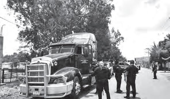 El tráiler avanzó y salió a la altura de la colonia Gaspar Valdés, sin embargo el chofer se metió a exceso de velocidad hasta una gasolinera, donde además terminó pegándole en la parte lateral a la unidad de Tránsito.