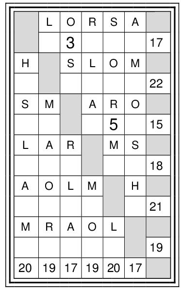 Para resolver este numerograma, ponga debajo de cada letra el número correspondiente y que al final coincida con las sumas de la derecha y de la parte inferior.
