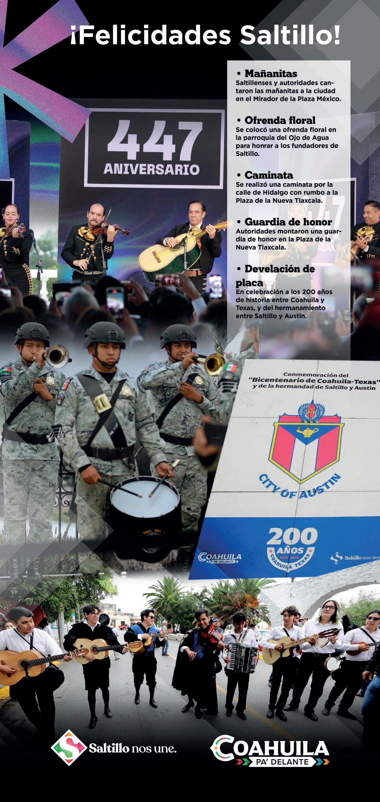 El pueblo mágico de Viesca también estuvo de manteles largos, pues cumple años el mismo día que Saltillo. Razón por la que la subsecretaria de Turismo, Martha Moncada Zertuche, acompañó al alcalde Hilario Silvet Escobedo de la Paz en la sesión solemne de Cabildo, para la entrega de la Presea Viesca para Armando Sosa Favela, en vida; para Tomás Santoyo Ibarra, en la categoría post mortem. Desde temprana hora, Manolo Jiménez envió una felicitación a este municipio por el 293 aniversario de su fundación.