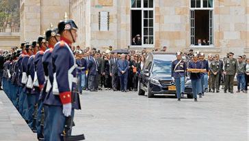diente en el Salón Elíptico del Capitolio Nacional, donde recibió la despedida de miles de personas y desde allí fueron trasladados, ayer, a la Catedral Primada para el oficio religioso. El féretro, cubierto con la bandera nacional, fue retirado del Capitolio por soldados del Batallón Guardia Presidencial que lo acompañaron en los pocos metros. n EFE