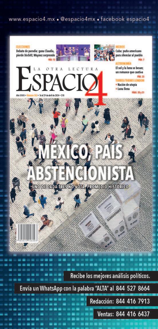 niñez n Nacional @PeriodicoZocalo Periodico Zócalo zocalosaltillo @ZocaloWebMedia Domingo 28 de abril de 2024 | Año XVI | Número 5790 | 76 páginas | 5 secciones | www.zocalo.com.mx $12.00