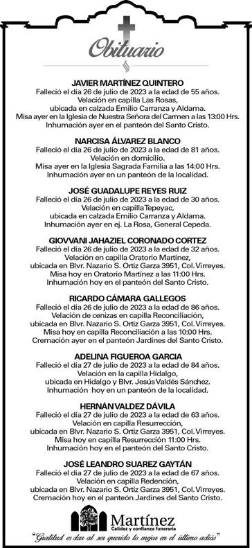 .EMPRESA FUNERARIA SOLICITA ENCARGADA DE CAPILLA Y CHOFER PARA CARROZA DE 30 A 58 AÑOS, DISPONIbILIDAD DE HORARIO . INTERESADOS PRESENTARSE EN MIGUEL HIDALGO #1228, CASI ESQUINA CON FRANCISCO COSS O COMUNICARSE AL 844277-84-70 Y 844-414-44-85. ENTREVISTAS DE LUNES A VIERNES DE 9;00 A 1;00 PM Y DE 4;00 A 6;00 PM. OFRECEMOS PAGO SEMANAL, VALES DE DESPENSA Y PRESTACIONES DE LEY, CONTRATACION INMEDIATA, PRESENTARSE CON PAPELERIA OFICIAL