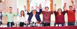 MÁS ALLÁ DE NEGOCIACIONES’ z Ricardo Mejía, abanderado del PT, afirmó ayer que ni muerto declinará a su derecho de buscar la Gubernatura. “Yo soy el candidato de mujeres y hombres que tienen hambre y sed de justicia en Coahuila, y por eso nuestra lucha va más allá de cualquier negociación”, indicó.