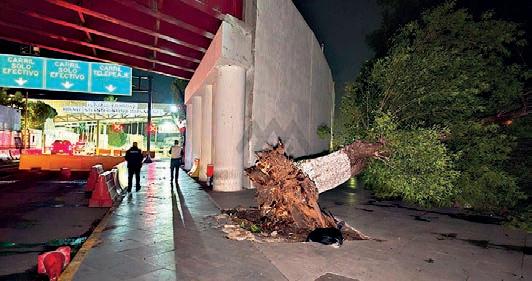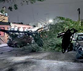 z La tromba provocó la caída de postes, árboles y señalamientos, a la par de que generó