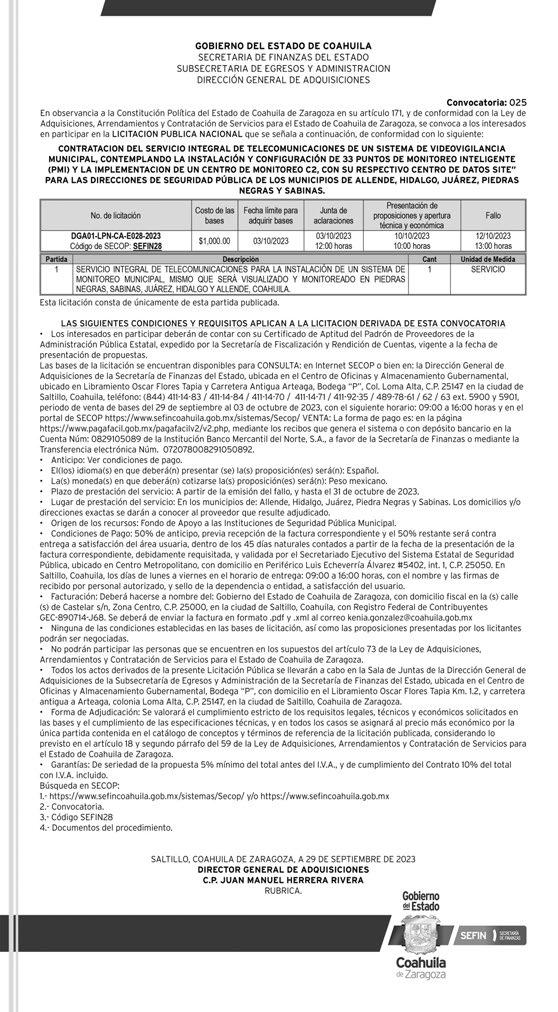 Y 844-414-444-85. ENTREVISTAS DE LUNES A VIERNES DE 9;00 A 1;00 PM Y DE 4;00 A 6;00 PM. OFRECEMOS PAGO SEMANAL,VALES DE DESPENSAY PRESTACIONES DE LEY, CONTRATACION INMEDIATA, PRESENTARSE CON PAPELERIA OFICIAL.