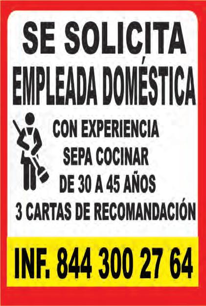 INTERESADOS ENVIAR CV AL CORREO VENTASTORREON01@BRR. MX, LLAMAR AL 871183-00-06 Y 871-34781-35 PRESENTAR SOLICITUD EN CALLE DR. LORENZO MARTINEZ MEDINA, FRACC. LOS CARLOS #235-8, SALTILLO COAHUILA, A UN COSTADO DE SORIANA PORTALES ENFERMERAS SE SOLICITA PERSONA SEXO FEMENINO PARA CUIDARA PERSONA DE LATERCERA EDAD, QUE TENGA CONOCIMIENTOS BASICOS DE ENFERMERIA Y SEPA MANEJAR, TURNOS DE 24 HORAS, COMUNICARSE AL TELEFONO. 844-160-77-26 Y 844-185-49-24 INTENDENTES