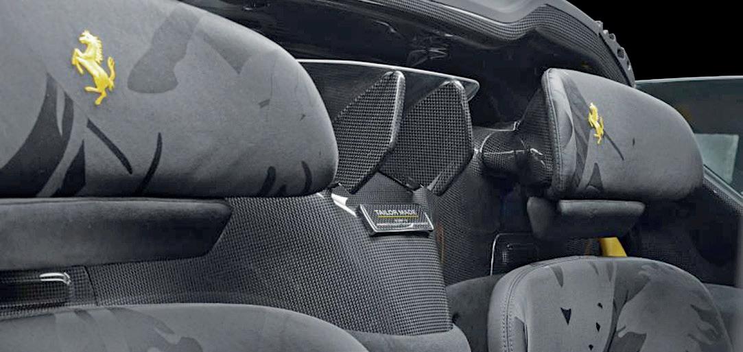 rey Car Week, en California. El ejemplar fue subastado en dicho evento y alcanzó un monto de 26 millones de dólares, cifra récord para un Ferrari nuevo. Al exterior, destaca su peculiar diseño que desviste la fibra