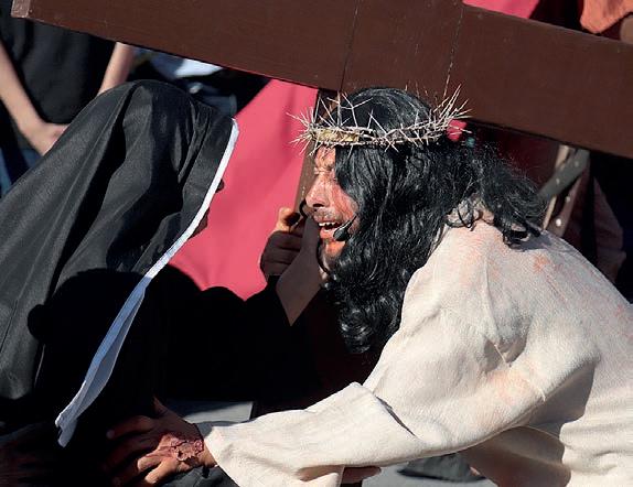Miles de saltillenses acudieron al barrio antiguo a contemplar la Pasión de Cristo representada por la comunidad del Ojo de Agua, para recorrer el camino al Calvario y obtener fuerzas para superar sus problemas cargando “su cruz” de cada día.