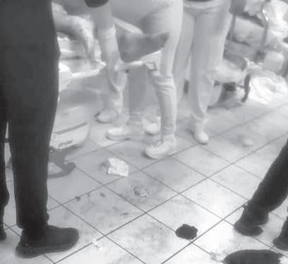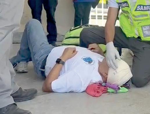 z El momento en que el profesor Héctor Alejandro es atendido en uno de los pasillos de la institución, tras la agresión.