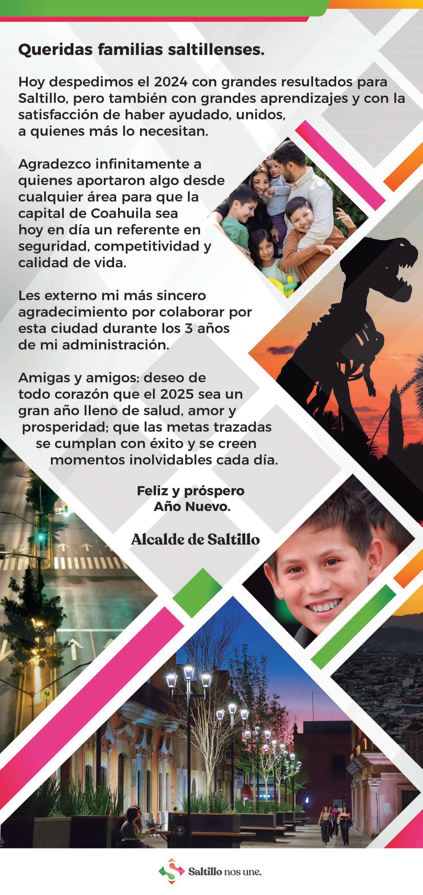 Grupo Zócalo desea lo mejor hoy, cierre de año, y que el que inicia sea próspero, en el cual mantendremos firme nuestro compromiso de informar a Saltillo y a todo el estado n Ciudad