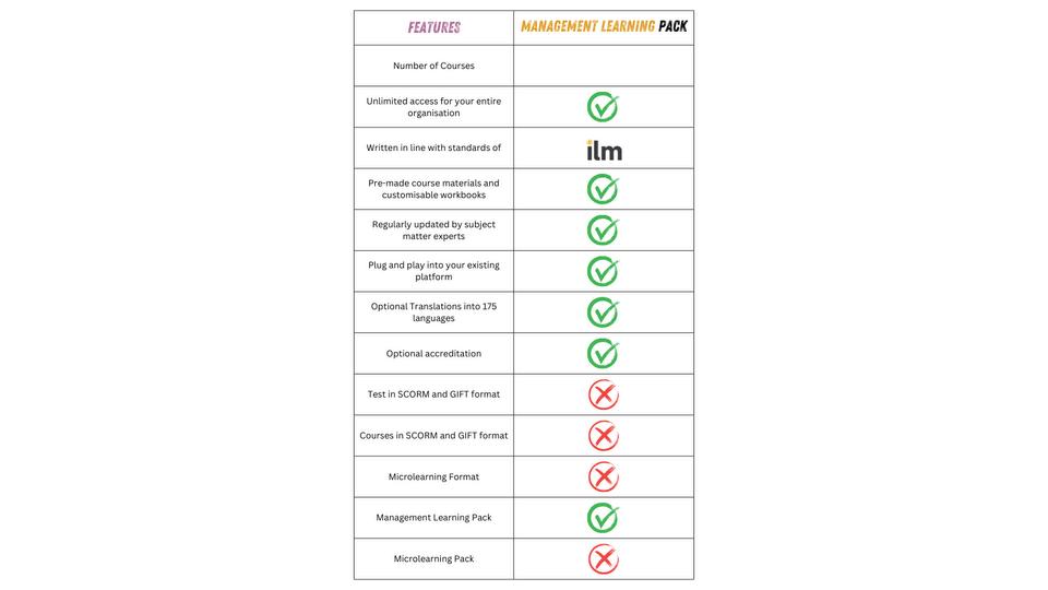 180+ microlearning courses and interactive modules built on ILMaccredited content. Includes the Microlearning and Management Learning Package.