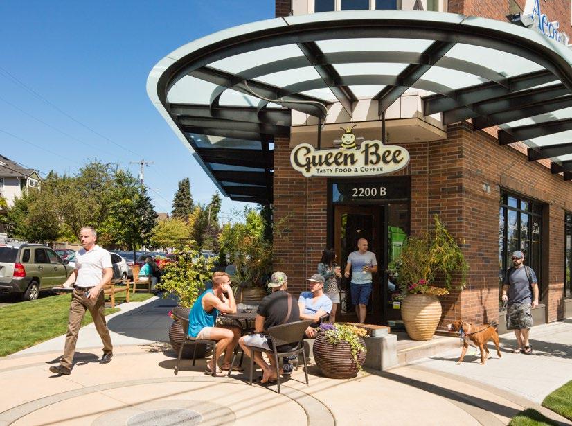 Beyond the Queen Bee, Aegis Madison features a mercantile boutique for shopping and a sky lounge on the rooftop where Seattle’s spectacular summers can be enjoyed with views spanning the Cascade Mountains from Mount Baker to Mount Rainier. The sky lounge and its views are open to the neighborhood and can be booked for events of all types, including weddings. When the weather takes its inevitable turn, spaces like the movie theater, demonstration kitchen, spa and sports den provide residents engaging and topof-the-line experiences that enhance a catered urban lifestyle. A focus on engagement with dignity is present in all aspects of the building and the services offered to residents.