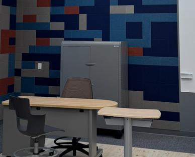 Subtle pattern and solid color acoustic wall tiles