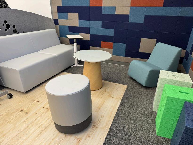 Soft seating areas for breakout activities or rest