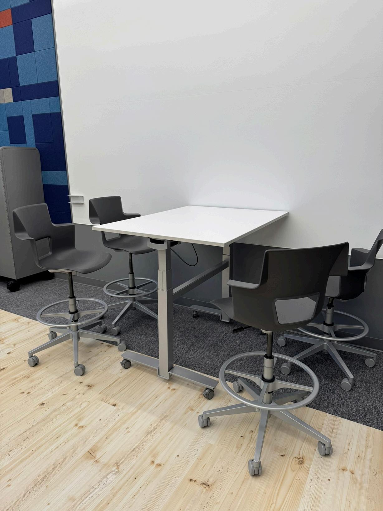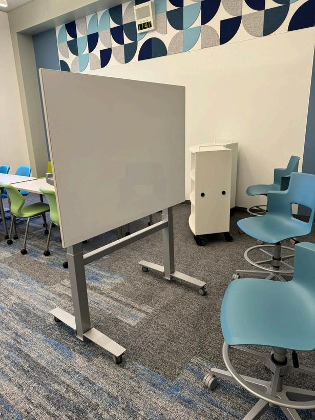 Surface Needs: Hard floors for easy cleaning, need more pushpin surfaces, and movable whiteboard panels.