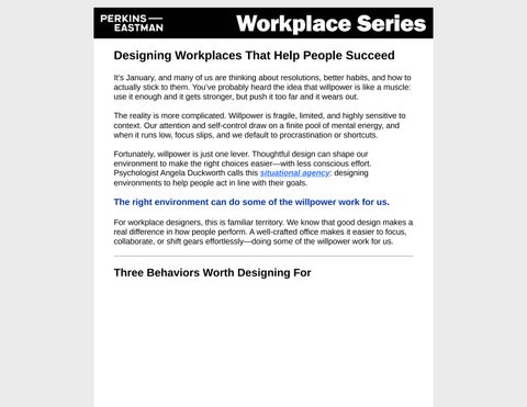 PART TWO OF A MULTI-PART PERKINS EASTMAN SERIES ON THE FUTURE OF WORK