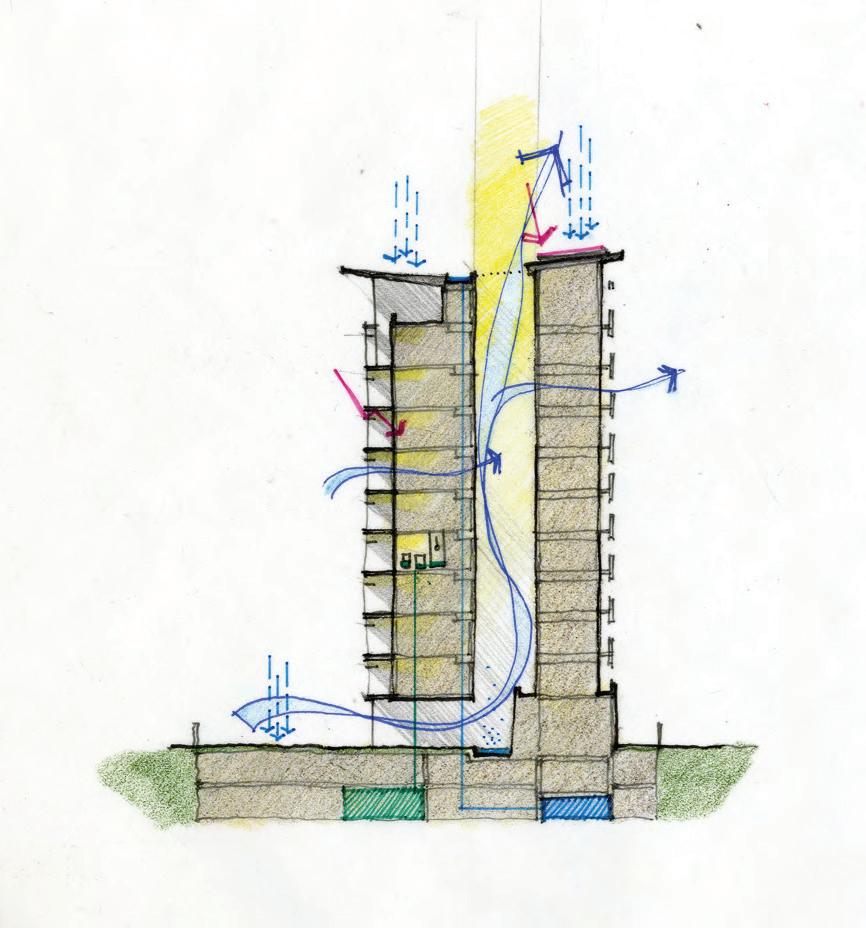 If you’ve noticed fewer architects sketching by hand, relying instead on digital tools, we have a refreshing story about Perkins Eastman artists who enjoy hand sketching so much they do it on and off the job (p. 24). Performing arts venues integrate and enliven patrons’ experiences in new ways. Read about the Shakespeare-inspired theater created from shipping containers, a beachfront amphitheater enhanced with VIP amenities, and a multipurpose theater on a dramatic campus site (p. 36). In terms of transit-oriented development, Perkins Eastman and our specialty studios are helping to catalyze a resurgence in downtown Raleigh, making Philadelphia’s century-old subway system accessible, and extending the SkyTrain in Canada (p. 42).
