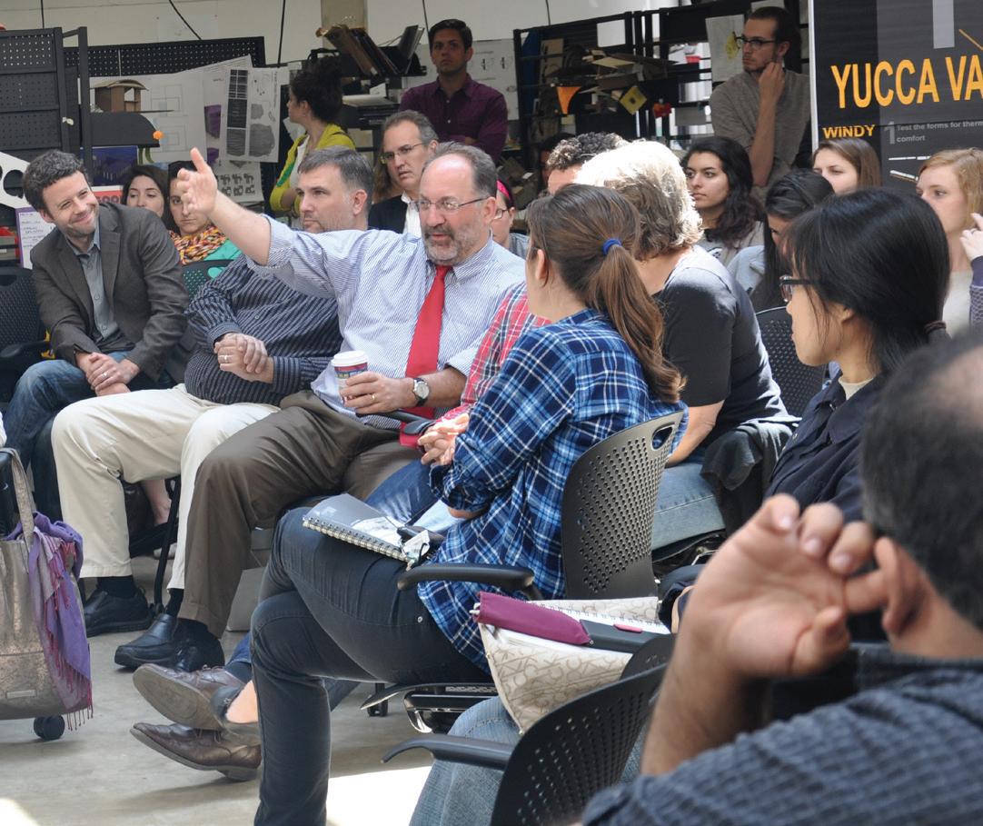 Above Matthew Bell leading a graduate design studio review at the University of Maryland.