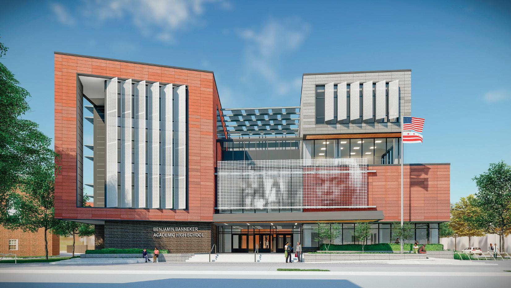 The jury selected three finalists: Benjamin Banneker Academic High School in Washington, DC; Fairleigh Dickinson University Campus Center in Teaneck, NJ; and Bassick High School in Bridgeport, CT. Each of the finalist teams presented their projects in a firmwide town hall, and, following a lively discussion, the jury selected Benjamin Banneker Academic High School to exemplify the best of our work for the year.