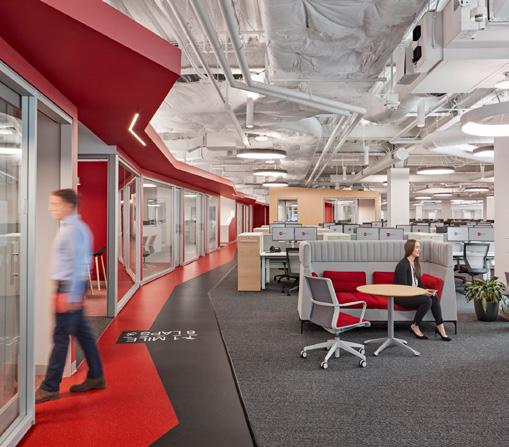 This financial services firm’s new headquarters campus comprises more than 400,000 sf of office space. The design incorporates playful features both inside and out, including a dedicated games space to foster innovation and informal collaboration, as well as former surface parking areas transformed into landscaped courtyards with amenities akin to a college “quad.” In addition, the campus provides the surrounding community with a 41,000 sf public park connected to pathways through the campus. The new office design uses various strategies to improve the employee experience, such as maximizing daylight, integrating work space with state of the art amenities, and creating a unique building circulation system that encourages gathering and collaboration.