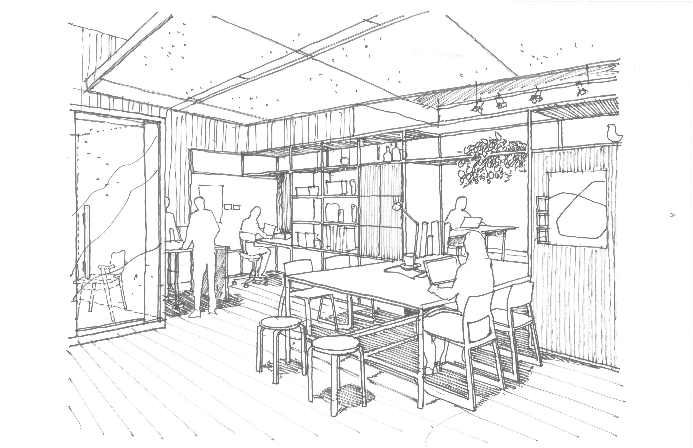 Less personal workspace / more communal and collaborative space